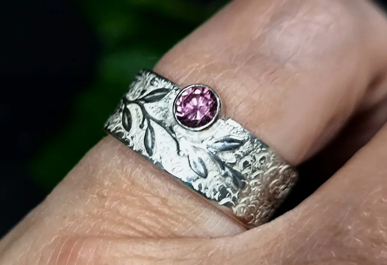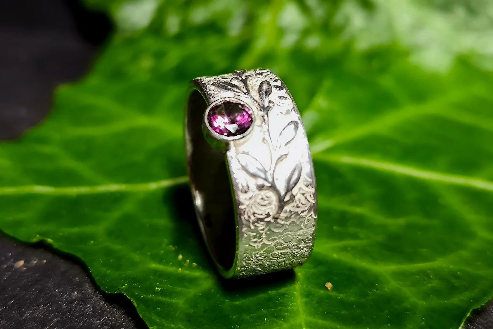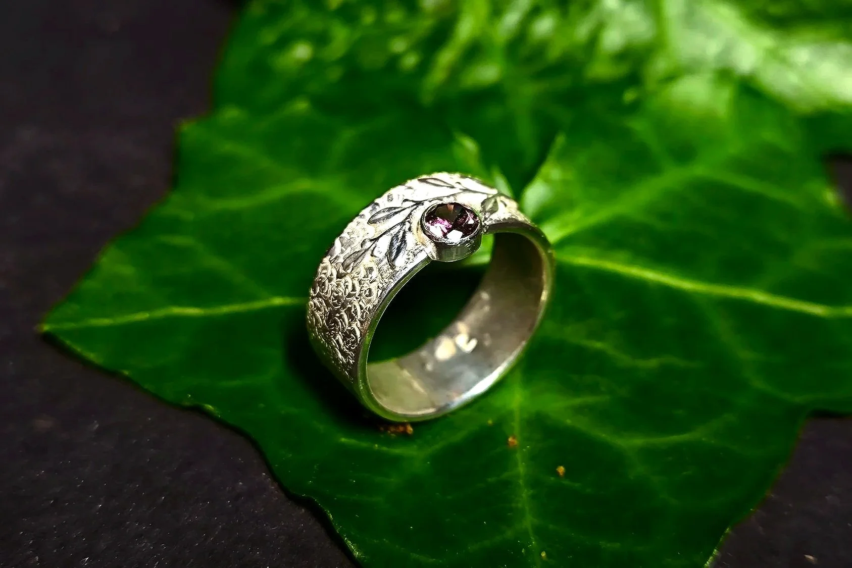 Zarte Olivenblätter, liebevoll aufgelötet auf einen Silberring mit meiner ganz besonderen Lieblingsstruktur. Die Ränder sind fein und angeschmolzen, was dem Ring eine sanft fließende Bewegung und Lebendigkeit verleiht. Kleine Silberkügelchen und ein strahlender Peridot in der Größe 6×4 mm lassen diesen einzigartigen Ring in wunderschönem Glanz erstrahlen und machen ihn zu einem wahren Blickfang!